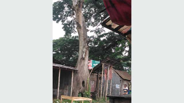 গাইবান্ধায় কাউয়া চত্বরের শতর্বষী গাছের ভারী ডালপালা ভেঙ্গে পড়ায় দূর্ঘটনায় পড়ছে পথচারীরা
