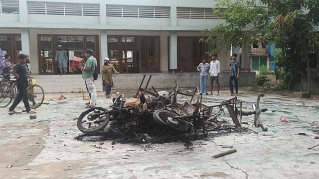থানার উপ-পরিদর্শক (এসআই) মোশারফ হোসেন জানান, “আন্দোলনকারীরা থানার প্রধান ফটকে এসে হামলা করে এবং থানার গাড়িগুলো ভাঙচুর করে।”