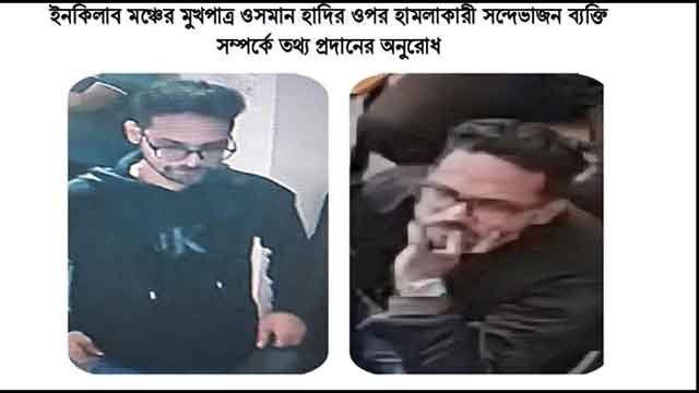 হাদিকে গুলি করা সন্দেহভাজনের ছবি প্রকাশ, তথ্য চাইলো পুলিশ