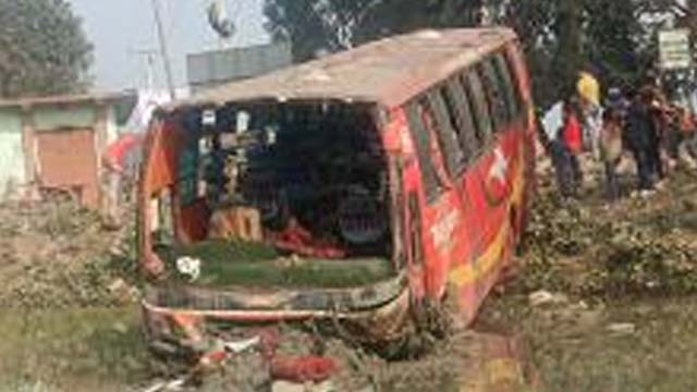 বাসটি চৌগাছা-মহেশপুর টেঙ্গুরপুর মোড় পৌঁছালে চালক সামনে থাকা রাস্তার স্পিড ব্রেকার দেখতে না পেয়ে নিয়ন্ত্রণ হারিয়ে সড়কের পাশে খাদে পড়ে যায়।