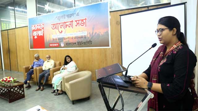 বাংলাদেশ ইউনিভার্সিটিতে (বিইউ) যথাযোগ্য মর্যাদা ও শ্রদ্ধার সঙ্গে জুলাই গণঅভ্যুত্থান স্মরণে আলোচনা সভা ও আলোকচিত্র প্রদর্শনীর আয়োজন করা হয়েছে। আজ বৃহস্পতিবার (১৭ জুলাই) বিশ্ববিদ্যালয়ের হলরুমে আয়োজিত এ অনুষ্ঠানে বক্তারা শহীদদের আত্মত্যাগ, আন্দোলনের তাৎপর্য এবং শিক্ষার্থীদের অগ্রণী ভূমিকা তুলে ধরেন।