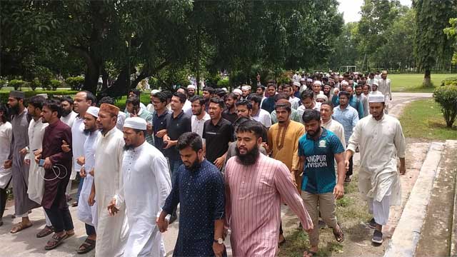 শনিবার (২৬ জুলাই) বেলা ১১ টা থেকে আল কুরআন বিভাগের আহ্বানে ক্যাম্পাসের বটতলায় জড়ো হন শিক্ষার্থীরা। বটতলা থেকে মিছিল বের হয়ে গুরুত্বপূর্ণ সড়ক প্রদক্ষিণ করে প্রশাসন ভবনের সামনে অবস্থান নেন তারা। আগামী মঙ্গলবারের মধ্যে পূর্ণাঙ্গ রিপোর্ট প্রকাশের আশ্বাস পেয়ে দুপুর দেড়টায় মাঠ ছাড়লেন শিক্ষার্থীরা।