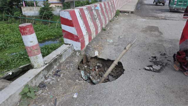 নবীনগরে একাধিক নতুন ব্রিজের পাশে গভীর গর্ত