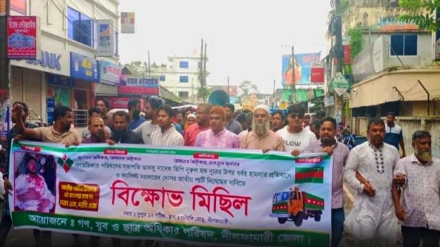 গণ অধিকার পরিষদের সভাপতি ও ডাকসু’র সাবেক ভিপি নুরুল হক নুরুর উপর হামলার প্রতিবাদ এবং জাতীয় পার্টি (জাপা) নিষিদ্ধের দাবিতে নীলফামারীতে বিক্ষোভ সমাবেশ অনুষ্ঠিত হয়েছে।