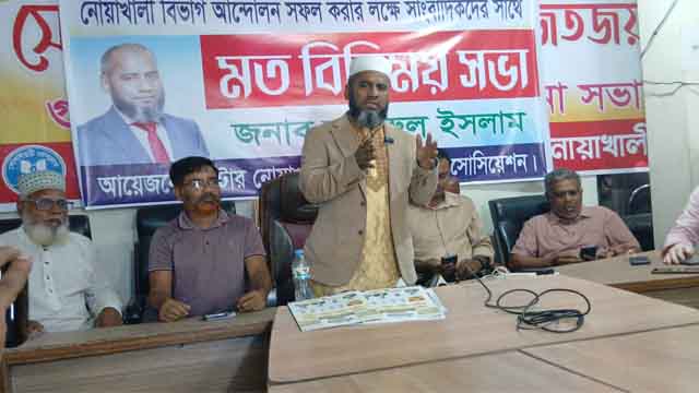 বুধবার (১৫ অক্টোবর) সকালে নোয়াখালীর সোনাইমুড়ী প্রেসক্লাবে নোয়াখালী বিভাগ আন্দোলন সফল করার লক্ষ্যে’ সাংবাদিকদের সাথে এক মতবিনিময় সভায় তিনি এই ঘোষণা দেন।