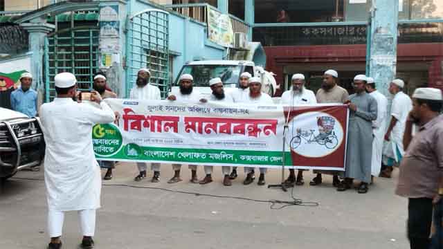 ১৫ অক্টোবর বুধবার কক্সবাজারের জেলা প্রশাসকের কার্যালয়ের সামনে এই মানববন্ধন গুলো অনুষ্ঠিত হয়। সকাল সাড়ে দশটায় বাংলাদেশ জামায়াতে ইসলামী কক্সবাজার জেলা আমীর অধ্যক্ষ নুর আহমদ আনোয়ারির সভাপতিত্বে ও জেলা সেক্রেটারি মাওঃ জাহেদের পরিচালনায় জেলা জামাতের মানববন্ধনে জেলা ও শহরের বিভিন্ন দায়িত্বশীলরা বক্তব্য রাখেন। বাদে জুহর ইসলামি আন্দোলন বাংলাদেশের কক্সবাজার জেলা সভাপতি মাওঃ আমিরুল ইসলামের সভাপতিত্বে ও সহ সাধারণ সম্পাদক মাওঃ মোস্তাফিজুল হক চৌধুরীর পরিচালনায় অনুষ্ঠিত মানববন্ধনে জেলার বিভিন্ন স্থরের দায়িত্বশীলরা বক্তব্য রাখেন। সর্বশেষ আছরের নামাজের পরে বাংলাদেশ খেলাফত মজলিস কক্সবাজার জেলা শাখার উদ্যোগে পাঁচ দফা দাবি আদায়ের লক্ষ্যে একই জায়গায় মানববন্ধন অনুষ্ঠিত হয়।
