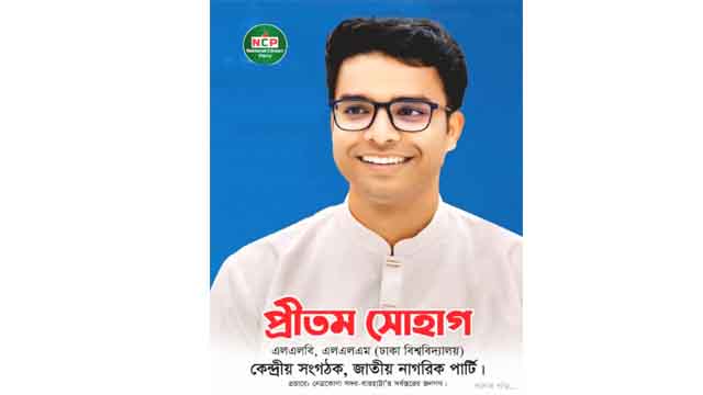 জাতীয় নাগরিক পার্টি এক মাস হয়েছে আত্মপ্রকাশ করেছে। আমরা আমাদের জায়গা থেকে সর্বোচ্চ চেষ্টা করবো যেন সৎ, যোগ্য ও দেশপ্রেমিক প্রার্থীদের মনোনয়ন দেওয়া যায়। এই চ্যালেঞ্জ নিয়ে নিজেকে প্রস্তুত করে মাঠে নেমেছে জাতীয় নাগরিক পার্টির কেন্দ্রীয় সংগঠক (উত্তরাঞ্চল) প্রীতম সোহাগ।
