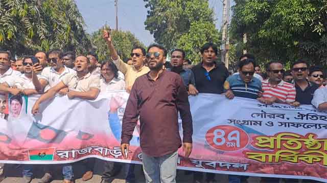 বাংলাদেশ জাতীয়তাবাদী যুবদলের ৪৭তম প্রতিষ্ঠাবার্ষিকী উপলক্ষে রাজবাড়ীতে বর্ণাঢ্য র্যালি ও পথসভা অনুষ্ঠিত হয়েছে।