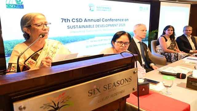 শনিবার সকালে রাজধানীর সিক্স সিজনস হোটেলে অনুষ্ঠিত ৭ম সেন্টার ফর সাসটেইনেবল ডেভেলপমেন্ট সম্মেলন ২০২৫-এর উদ্বোধনী অনুষ্ঠানে প্রধান অতিথির বক্তৃতায় তিনি একথা বলেন।