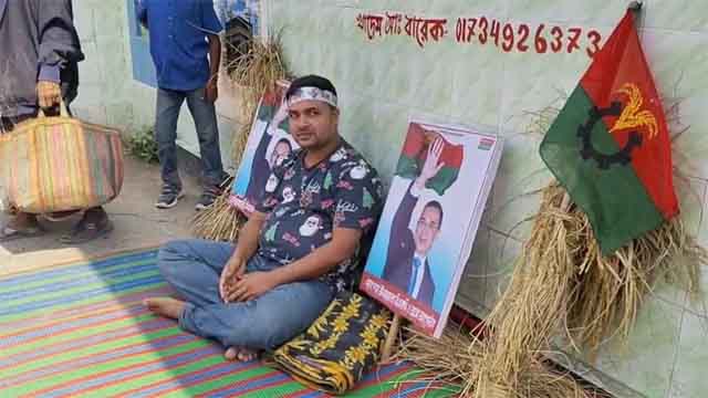 রাজবাড়ী-২ আসনে বাংলাদেশ জাতীয়তাবাদী দল (বিএনপি) এর ধানের শীষ প্রতীকের প্রার্থী ঘোষণার দাবিতে আমরণ অনশনে বসেছেন রাজবাড়ী জেলা তারেক জিয়া পরিষদের আহবায়ক মো. রিয়াজুল ইসলাম।