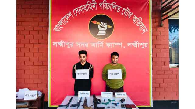 লক্ষ্মীপুরে অভিযান চালিয়ে ৫ টি আগ্নেয়াস্ত্রসহ আলাউদ্দিন বরকত ও পারভেজ হোসেন নামে দুই সন্ত্রাসীকে গ্রেপ্তার করেছে সেনাবাহিনী। এ সময় তাদের কাছ থেকে অস্ত্রের সঙ্গে ১৬ টি কার্তুজ উদ্ধার করা হয়।