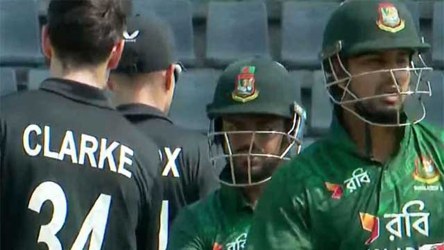 নিউজিল্যান্ডের শুরুটা হয় ডেল ফিলিপসকে হারিয়ে। শরিফুল ইসলামের এলবিডব্লিউতে শূন্য রানে বিদায় নেন তিনি। খালেদ আহমেদের দারুণ বোলিংয়ে পরের দুজনেও রানের খাতা খুলতে পারেননি। পাঁচে নামা দলের অধিনায়কেরও হয় একই পরিণতি। তবে একপ্রান্ত আগলে লড়ে যাচ্ছিলেন মারিউ। যদিও ৪২ রানের বেশি করতে পারেননি তিনি। শিকার হন তানভির ইসলামের।
