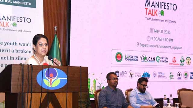 শনিবার (৩১ মে) ঢাকার আগারগাঁওয়ে পরিবেশ অধিদপ্তরে আয়োজিত “Manifesto Talk: Youth, Environment and Climate” শীর্ষক আলোচনায় প্রধান অতিথির বক্তব্যে তিনি এসব কথা বলেন। আলোচনায় অংশ নিয়ে তিনি ইয়ুথ ক্লাইমেট কোয়ালিশন এর আনুষ্ঠানিক উদ্বোধন করেন।