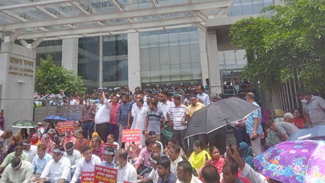 শনিবার (২৮ জুন) সকাল থেকে রাজধানীর আগারগাঁওয়ে এনবিআরের প্রধান কার্যালয়ের সামনে ঢাকাসহ বিভিন্ন জেলা থেকে আগত সংস্থাটির বিভিন্ন পর্যায়ের কর্মকর্তা-কর্মচারীরা এ অবস্থান কর্মসূচি পালন করছেন।